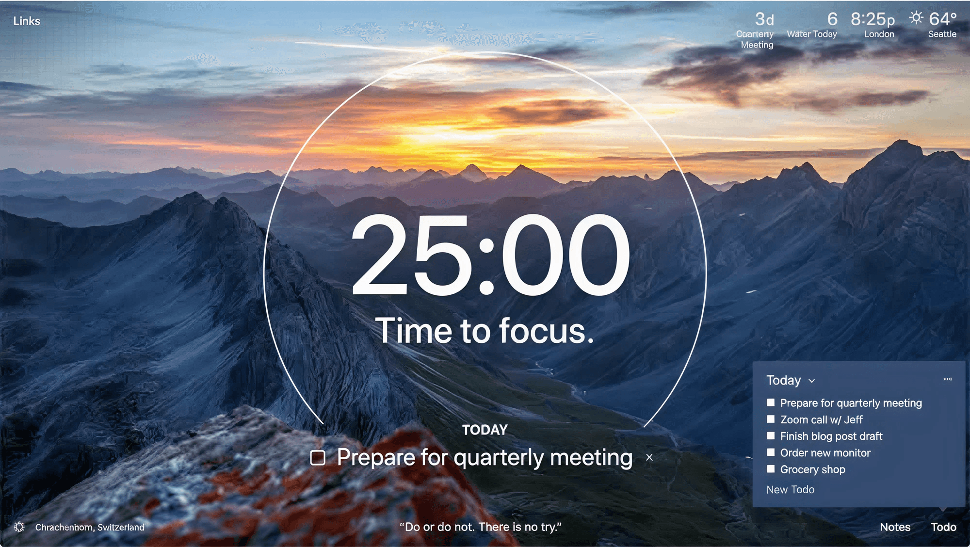 Add a Today’s Focus section at the top of the center column highlighting: