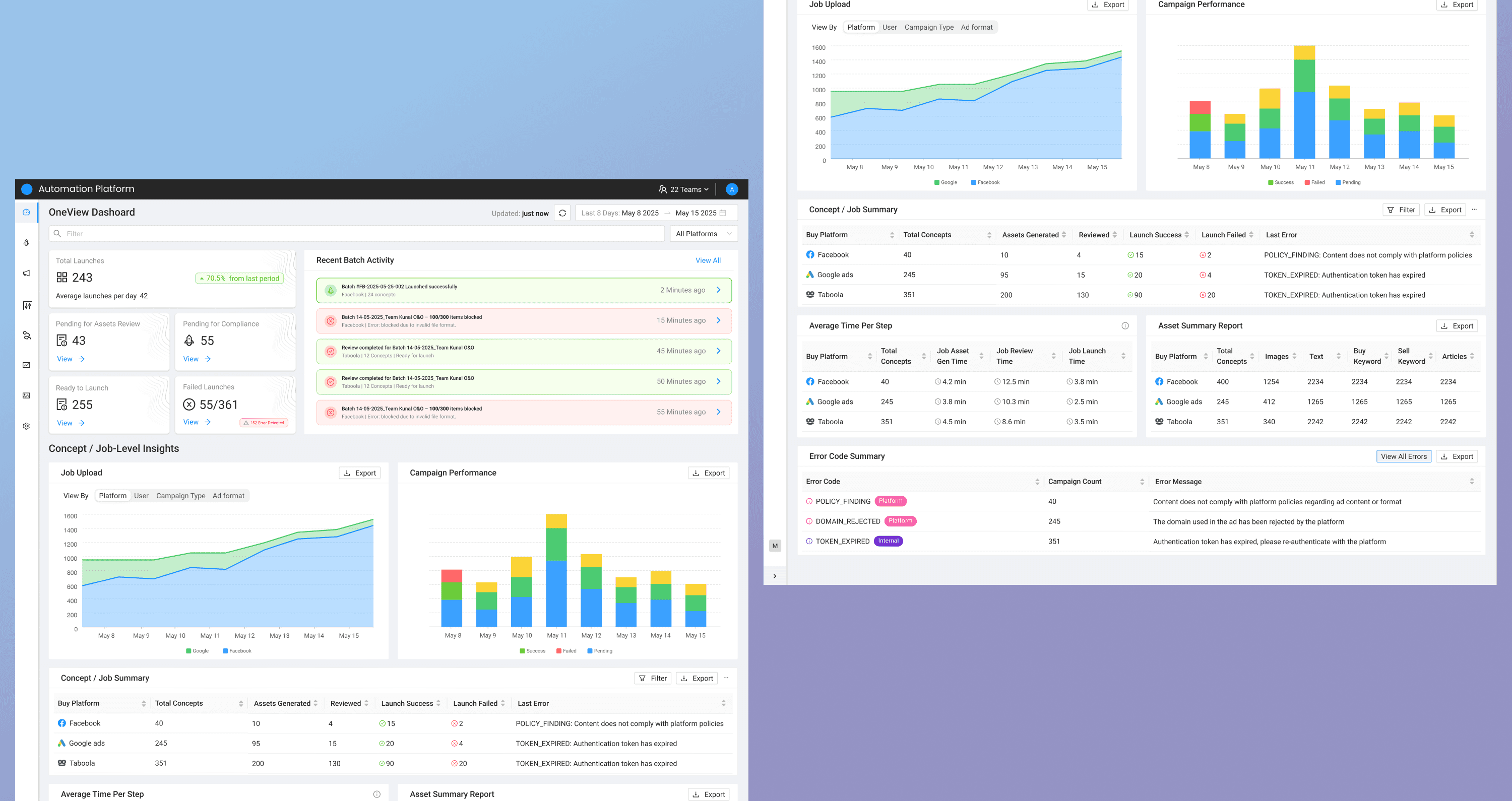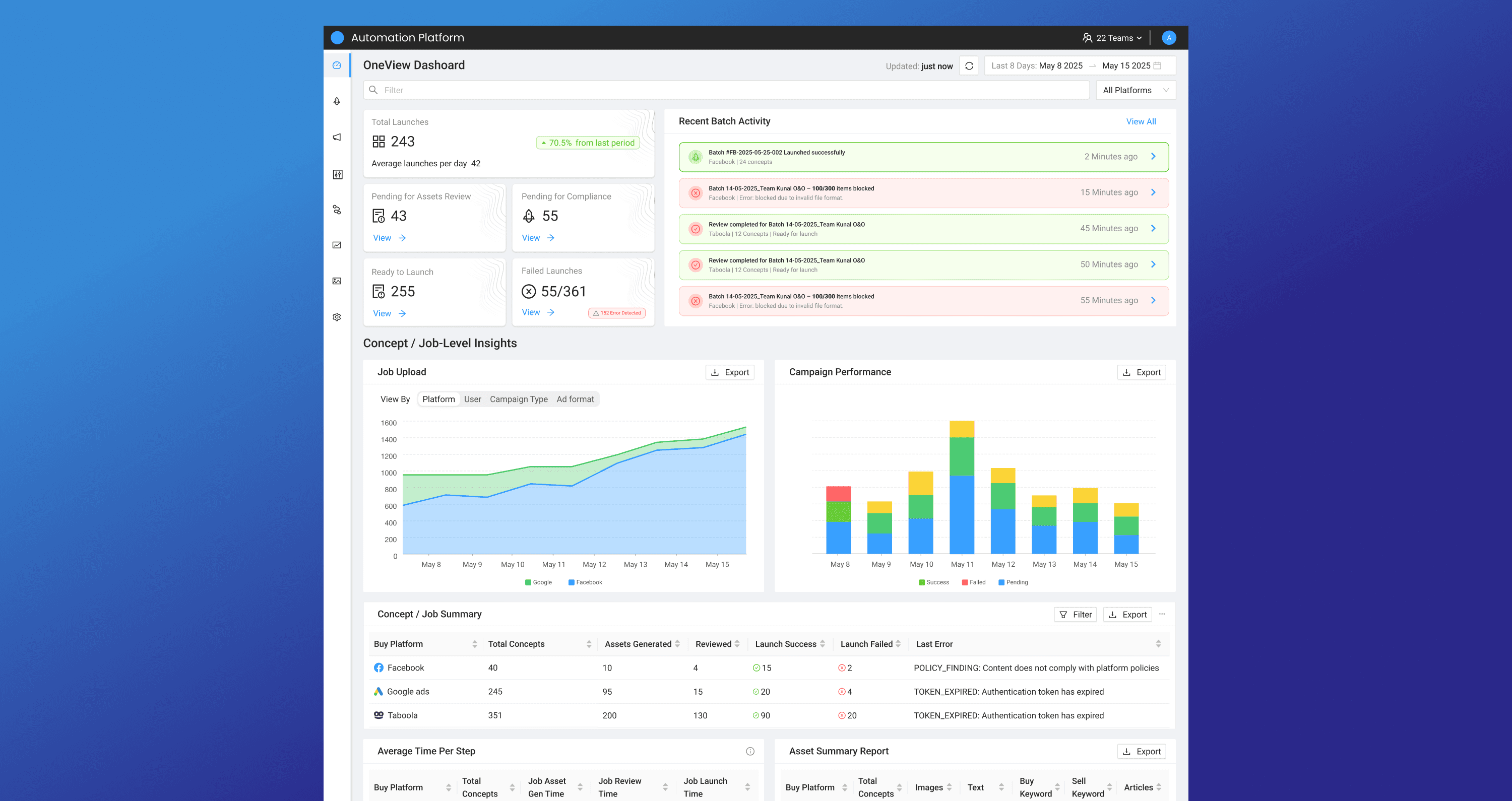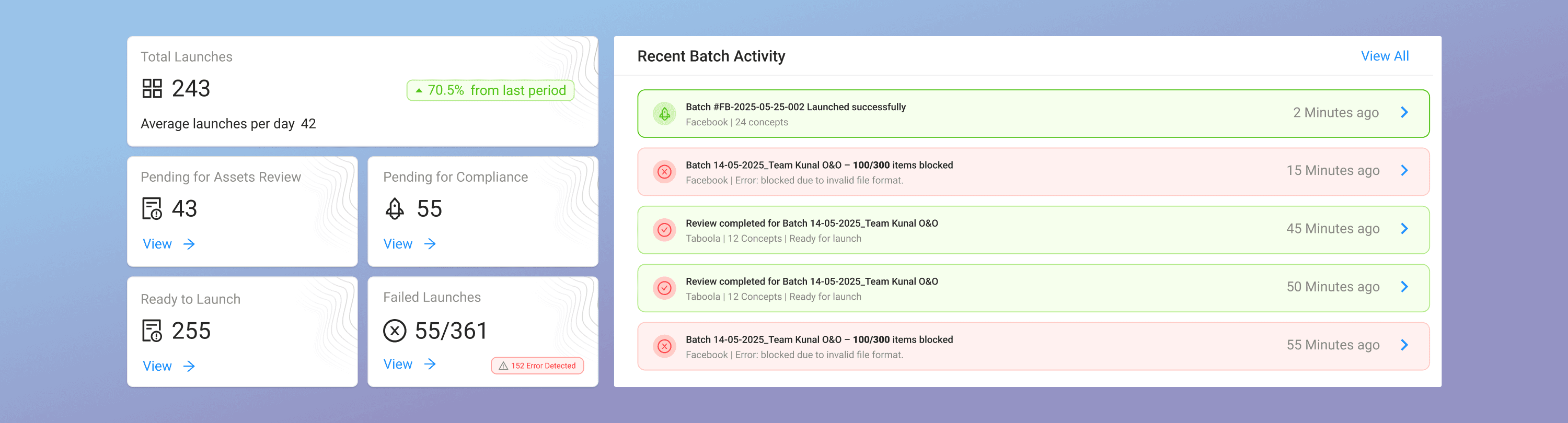 The dashboard provides a real-time, at-a-glance view of all batches and campaigns, enabling campaign managers to: