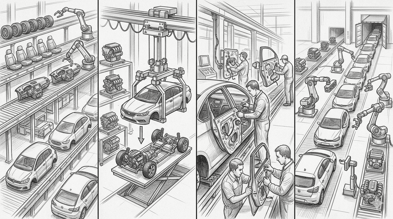 In a car factory, different componentsโengine, chassis, interiors, electronicsโare built independently and assembled step by step. Each stage is tracked for progress and quality, and any issue is identified and resolved before moving forward.