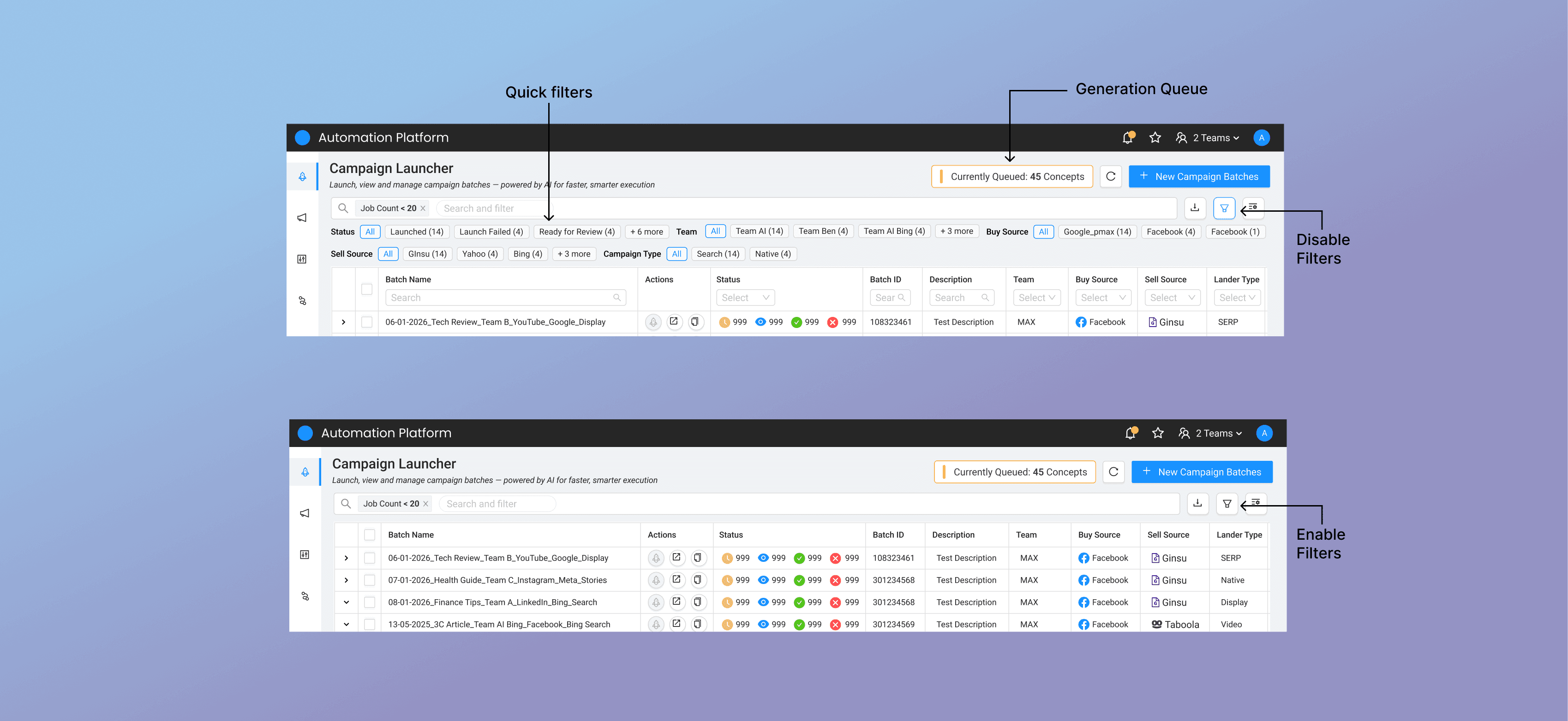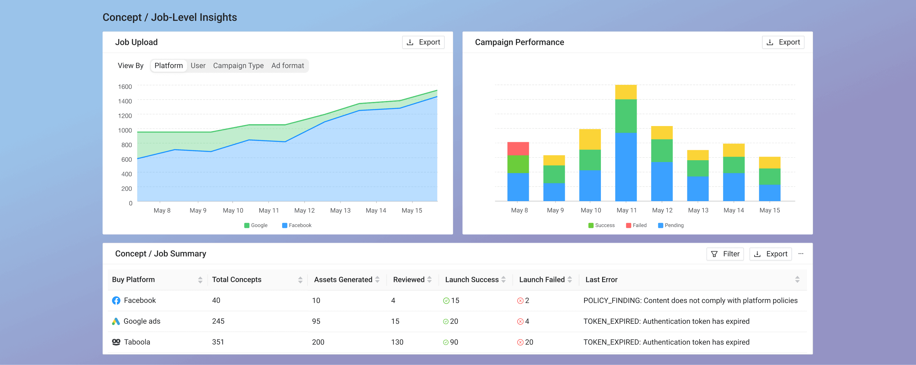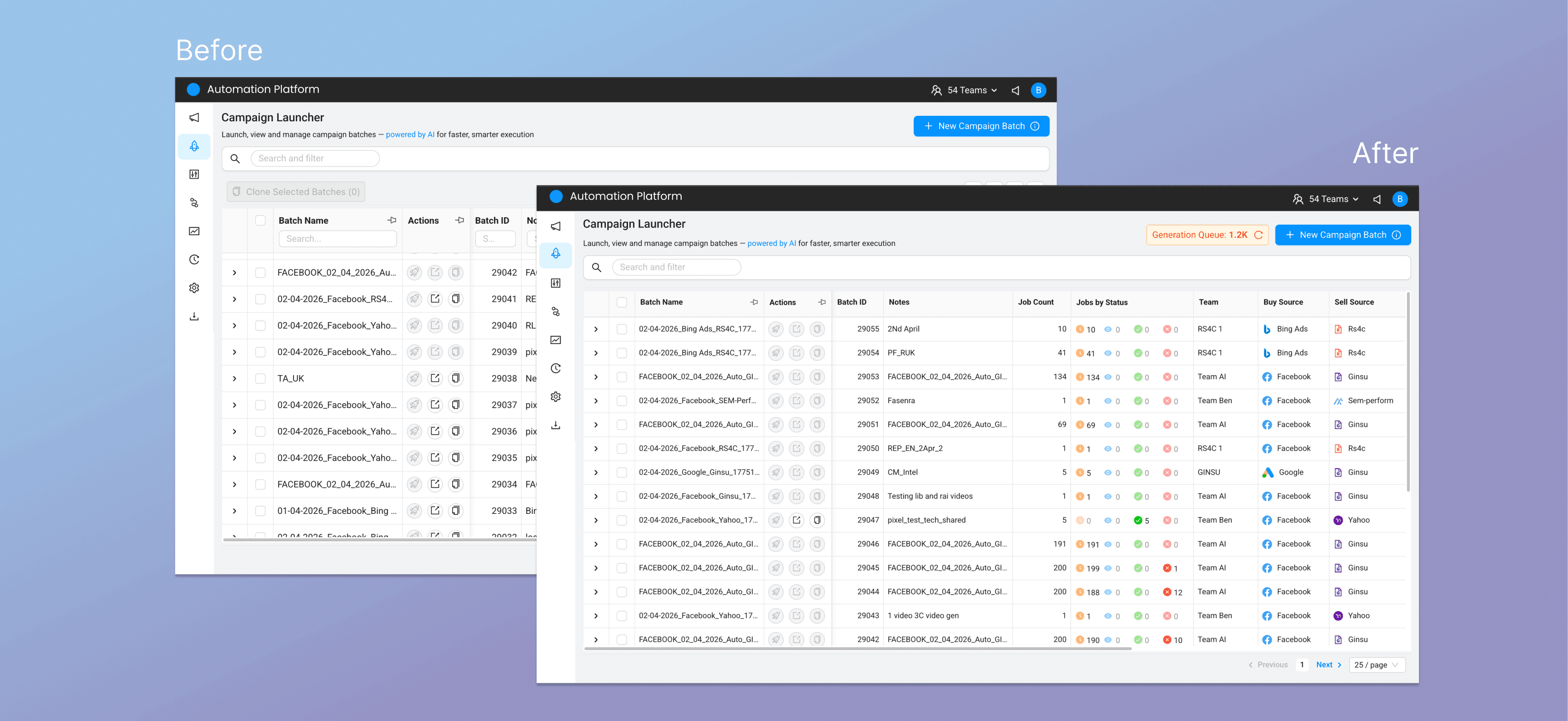 We applied the same concept to campaign creation by breaking the workflow into distinct jobs: